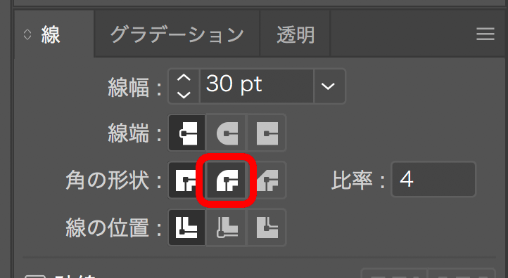 ただしここで線をつけた場合、線パネルで線を太くした場合に困ったことが起こります。